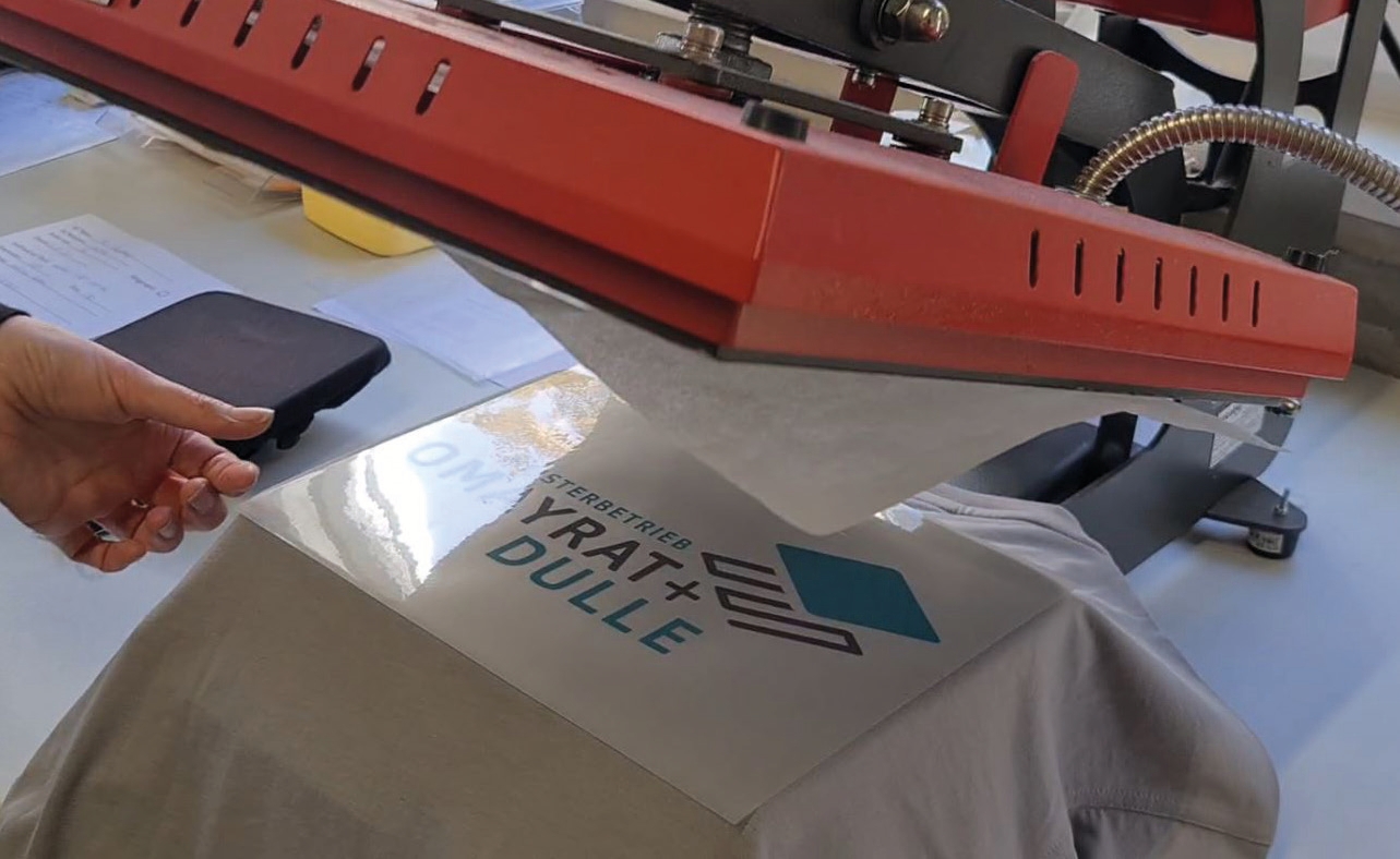 Für unsere hochwertigen Transferlogos die mit Hitze und Druck aufgepresst werden, empfehlen wir Textilien mit einem hohen Baumwollanteil, denn unter großer Hitze könnten Kunstfasern schmelzen. So garantieren wir beste Ergebnisse und eine langlebige Veredelung. Für die Pflege gilt: bei 30 °C waschen, keinen Weichspüler nutzen und nicht über den Druck bügeln.